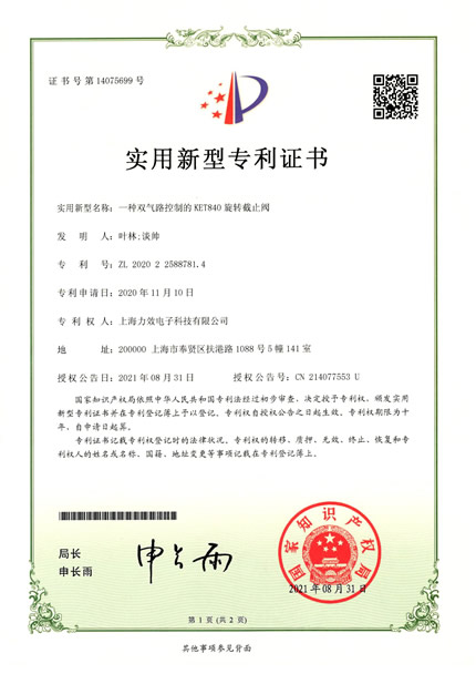 實(shí)用新型專(zhuān)利證書(shū)